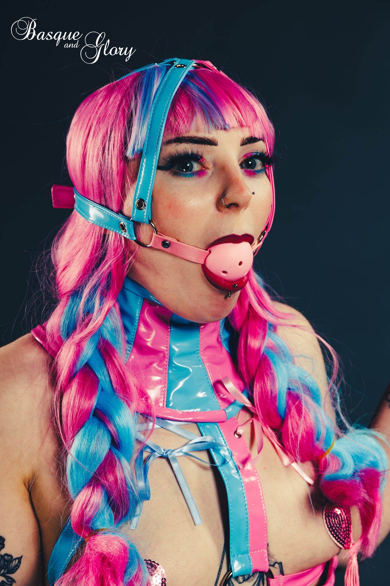 Introducing the Bubblegum Colored PVC Face Harness with a Ball Gag, a striking balance of playful aesthetics and fetish fun. This piece showcases a vibrant splash of bubblegum hue, transforming an ordinary accessory into a statement piece that matches our other Bubblegum pieces. Crafted from high-quality PVC, the harness promises durability while delivering a glossy finish that catches the light—and attention—with every movement. The ball gag, seamlessly integrated into the design, offers both comfort and restraint, enhancing your sensory experience.