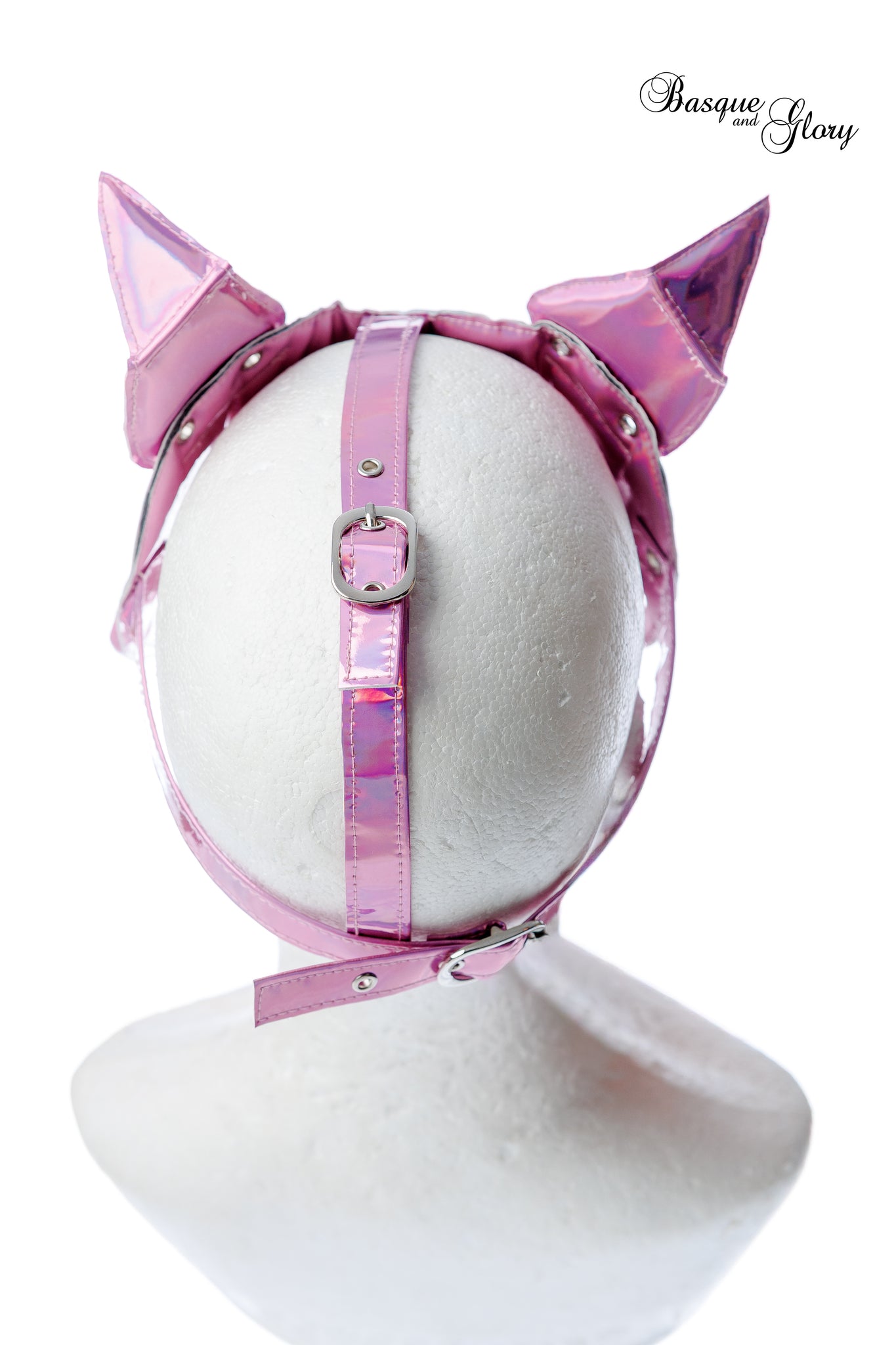 Made from pink holographic vinyl and PVC.